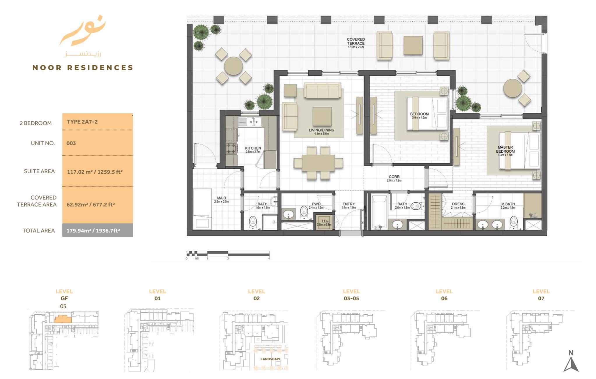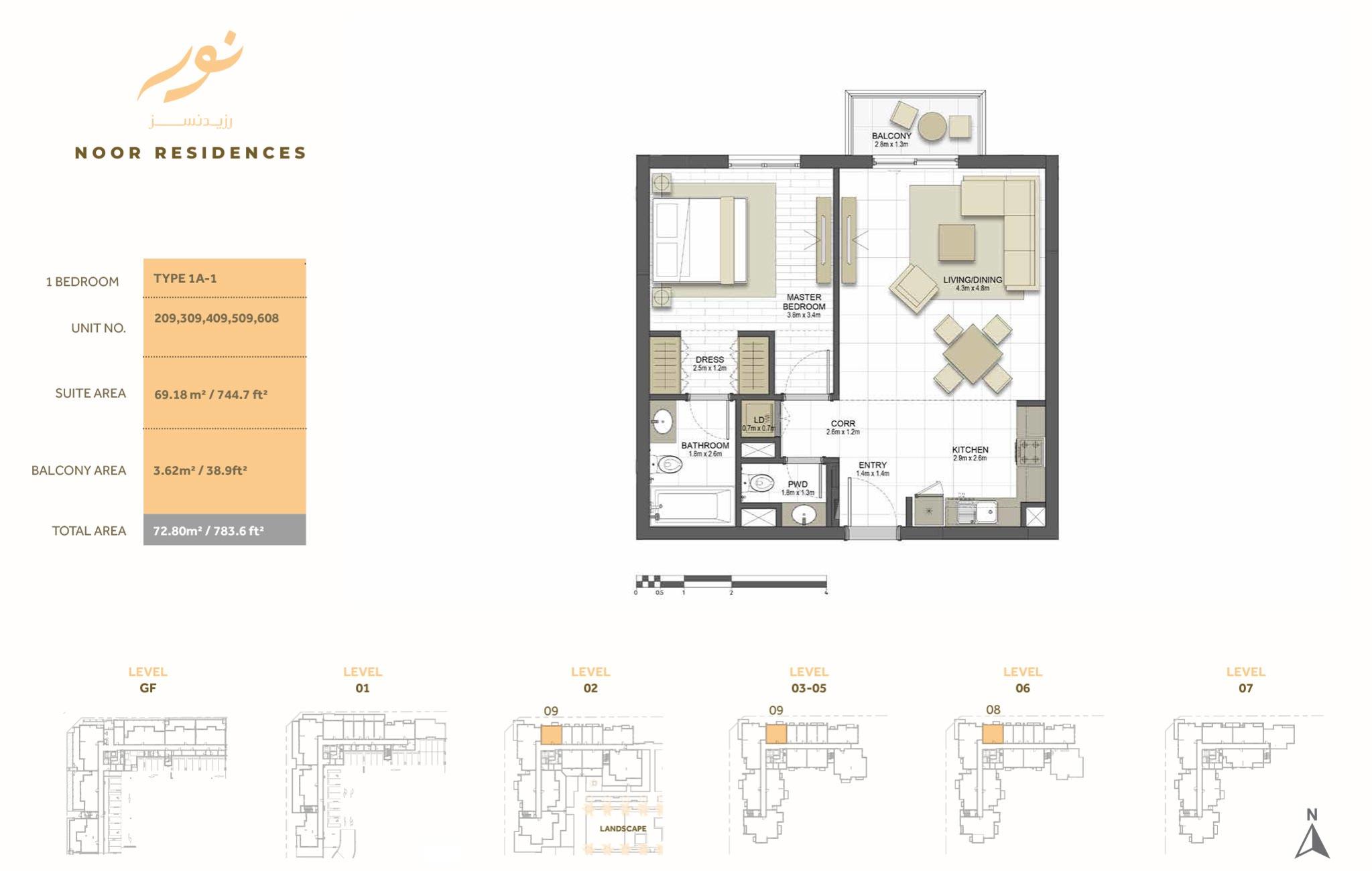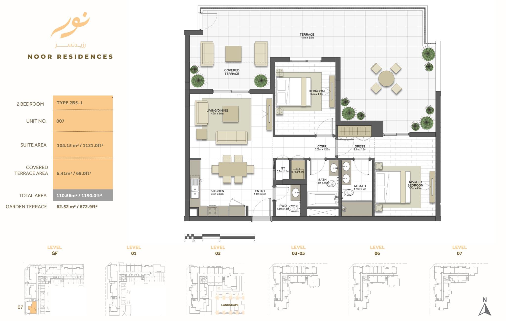 Several apartments located one side of the building that boasts views of the Dubai Canal, while back-side units offer views of the boulevard. Every apartment of Noor Residences has the highest specifications includes open space that crafted with convenience and comfort in mind. In addition to private gardens at the podium level, community residents can enjoy serene views of the canal and the Sharjah horizon. Surface units of the building provide direct road access from their terraces.